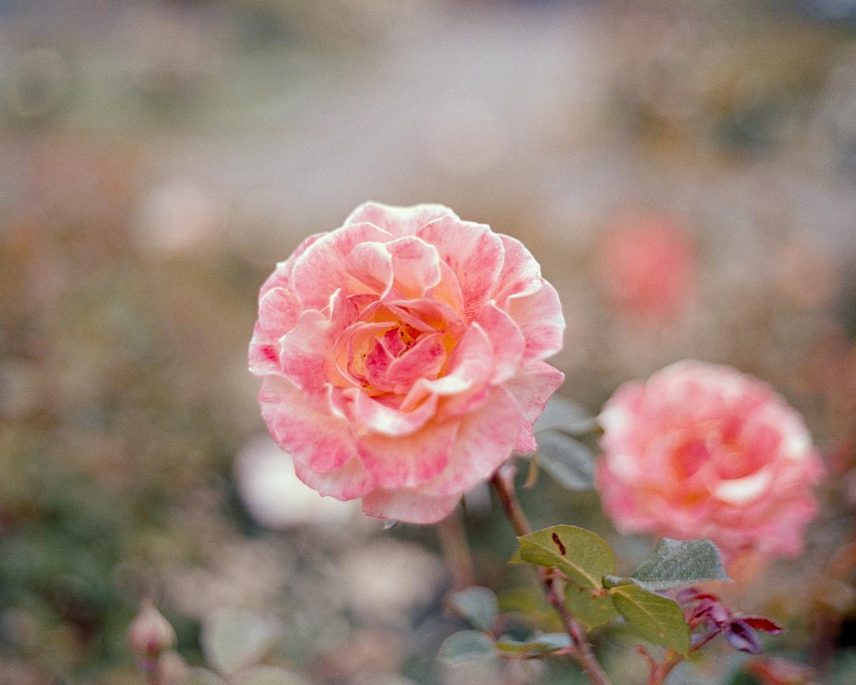 This photo was taken at Morcom Rose Garden in Oakland, California in May 2024. It was captured on 35mm film and displays typical film characteristics like visible grain and a softer focus compared to modern digital photography. Your print will be created from a scan of the original negative. Shot on an Olympus OM-1n on Kodak Portra 400.